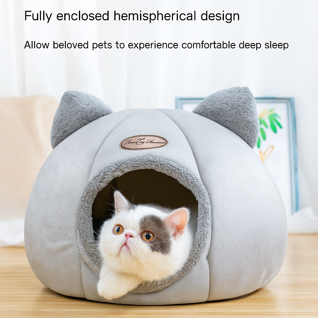 Give your cat the perfect place to rest, nap, and feel safe. The Original Cat Head Nest is designed with a fully enclosed hemispherical shape, creating a warm and quiet retreat. Made with soft Arctic fleece, short plush, and filled with high-resilience PP cotton and sponge, it offers superior comfort and insulation.