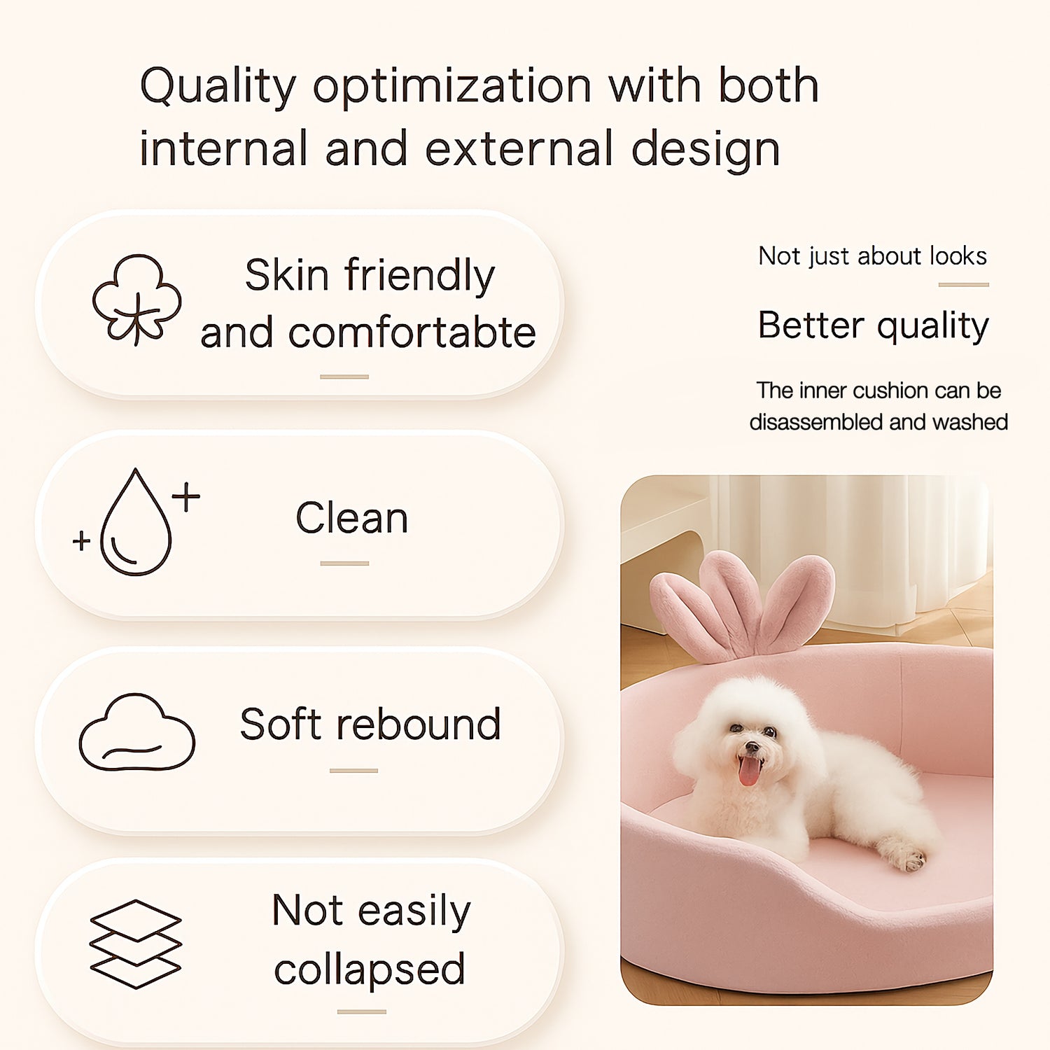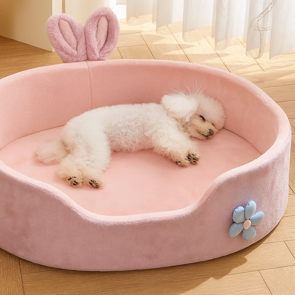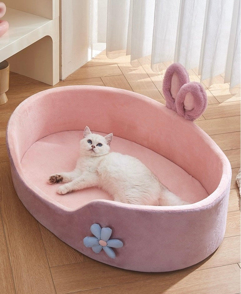This soft velvet pet bed provides a comfortable and secure resting space for cats and small dogs. Made from high-quality milk velvet and filled with dense sponge, it offers a supportive and cozy surface for sleep. The detachable cushion design makes cleaning simple, while the raised guardrail adds a sense of protection and comfort. With its elegant pink finish and subtle decorative details, this bed complements any home interior.